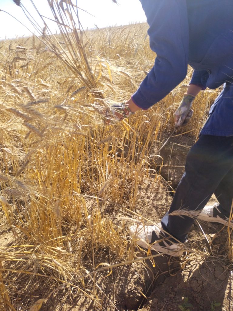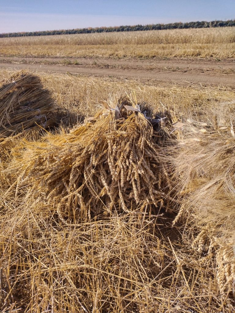 Қоспаларды болдырмау және жоғары дәлдікті қамтамасыз ету үшін селекциялық питомниктің 1-жылдық желілерін қолмен жинау жүргізілді. Бұл әдіс селекцияның бастапқы кезеңінде әлі де таптырмас болып саналады, өйткені әрбір желі – ғылыми тұрғыдан құнды жеке будандық комбинация. Әр желінің тәжірибелік алқабы – 0,5 м². уборка линий селекционного питомника 1 года вручную. Этот метод по-прежнему незаменим на начальных этапах селекции, когда каждая линия — это отдельная гибридная комбинация, представляющая научный интерес. Площадь делянки каждой линии – 0,5 м2.